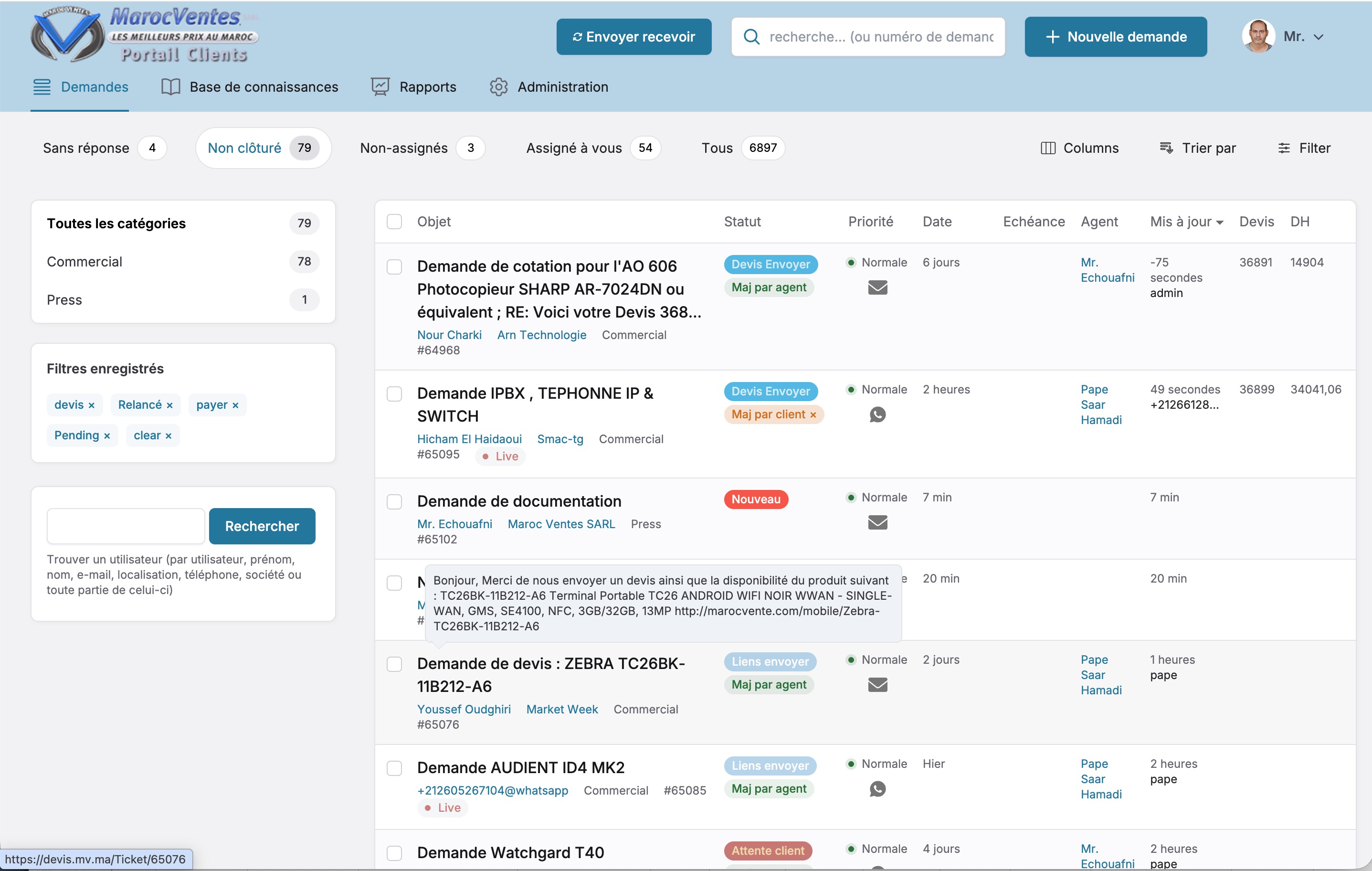 Relances automatiques sur les devis envoyés, favorisant la conclusion des ventes.